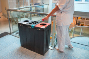 Bij het oogcentrum wordt voorlopig het afval, hoofdzakelijk afkomstig uit de OK, aan de bron gescheiden. Tilly Kraal vindt dit niet ideaal. Bij het uit elkaar trekken van gecombineerde verpakkingen en disposables van papier en plastic kunnen deeltjes vrijkomen die een risico vormen voor de steriele omstandigheden. “Ik zie liever dat het verantwoord gebeurt bij de afvalverwerker. In hoeverre wij werken met materialen waarin zeer zorgwekkende stoffen zijn verwerkt, weet ik niet. Wat dat betreft ben ik wel nieuwsgierig naar het onderzoek.”